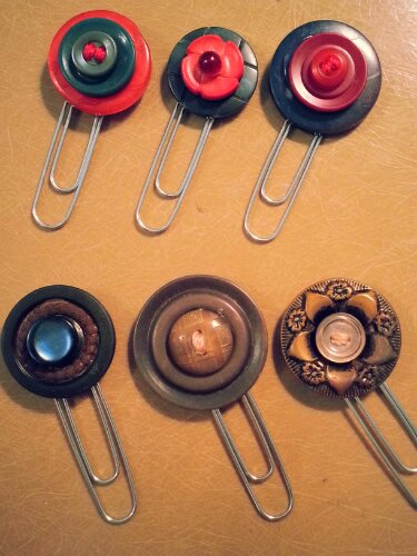 They tell aspiring writers to “write what you know”. I think the crafting/creative version of that statement would be “make what you love”. I love old and useful things (witness my undying passion for my husband) and I think these paperclip bookmarks made from vintage buttons is a beautiful representation of making what I love.