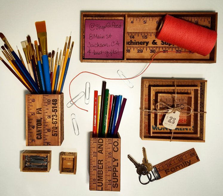 Just in from Pick Up Sticks! Pencil cups, desk caddies and any other container your heart desires made from vintage yardsticks. Makers, Joan and Pete are a joy to know and we’re thrilled to have them and their highly-awesome work here at Gifted! #thisisgifted #foryourdesk