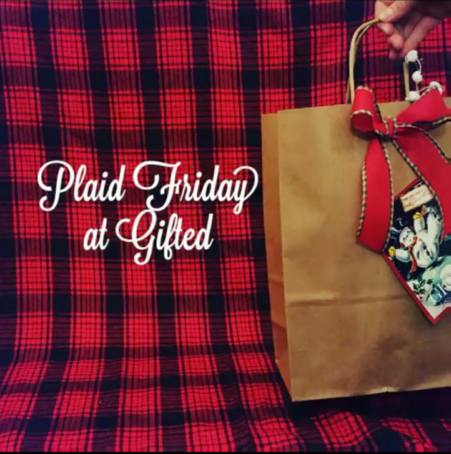 While the rest of the world is preparing to feast with their families, we’re stuffing 20 special bags for our loyal Plaid Friday customers. We open 9am Friday. Take a peek! #plaidfriday #thisisgifted #gwp