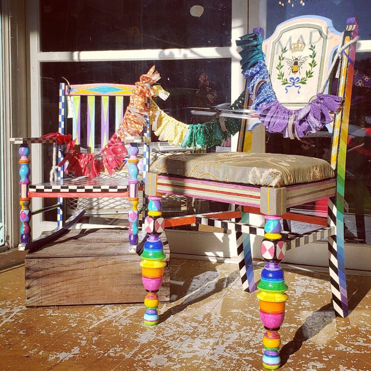 What would I have done for a last minute rainbow themed Dandelion days window if Charleen hadn’t dropped off this gorgeous chair today?!?! 🌈🥰 #fortuitous #serendipitous #gorgeous #thisisgifted