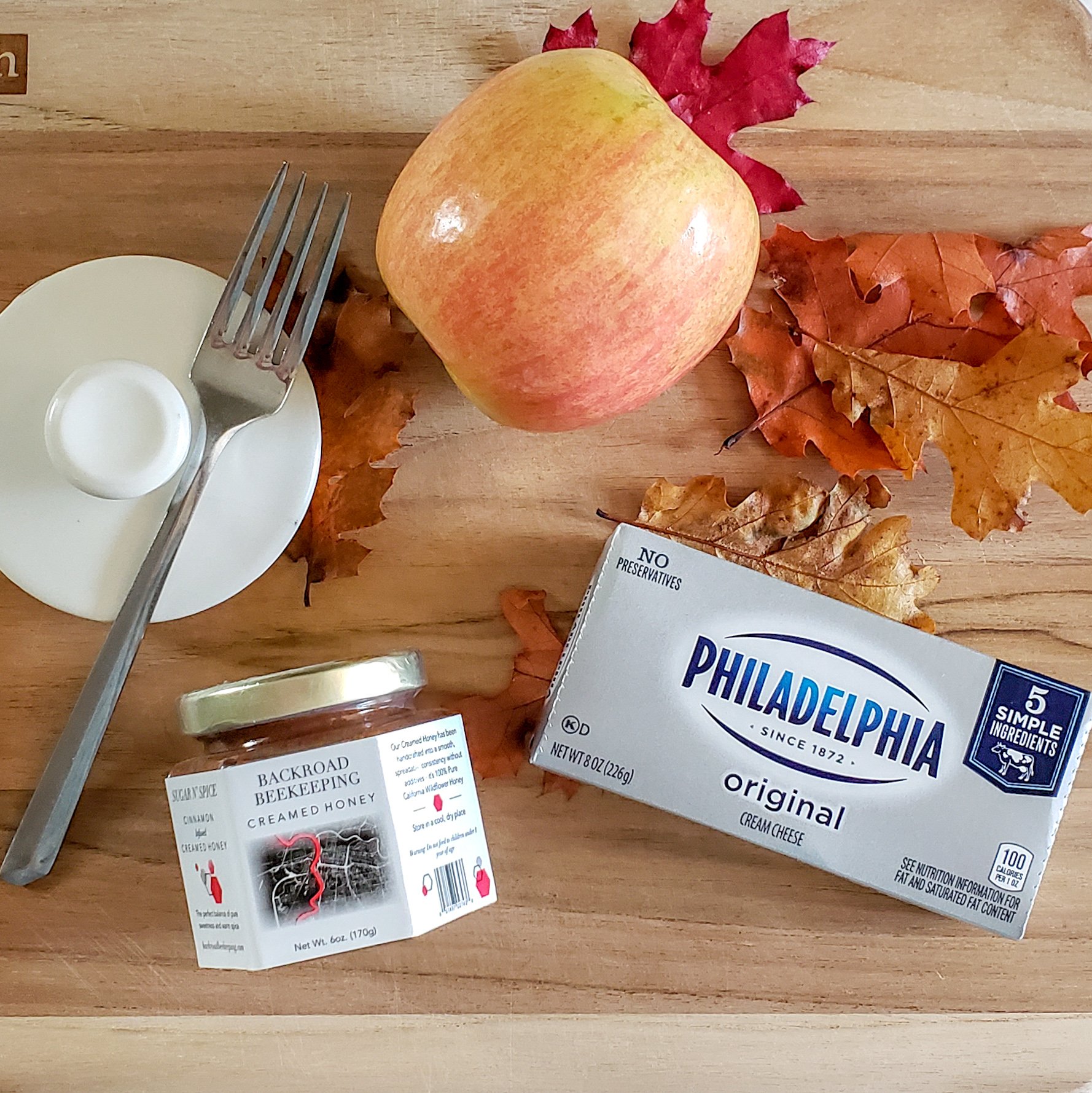 I whipped up this fruit dip with two simple ingredients and I can’t wait for you to try it! I used our Backroad Beekeeping cinnamon infused creamed honey and a block of cream cheese.